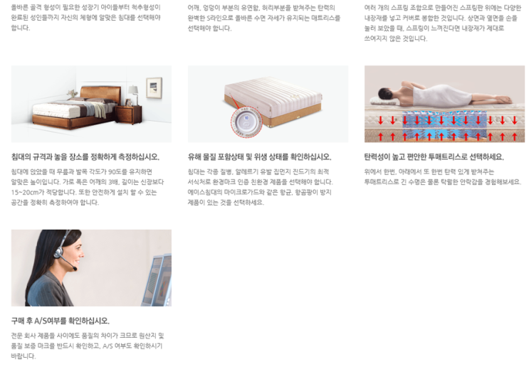 매트리스의 세로 너비는 높이보다 20~30cm, 너비는 팔 너비보다 10~15cm 더 넓어야 수면 중 자세를 바꿀 때 안정성을 확보할 수 있어 더 많은 것이 좋다.