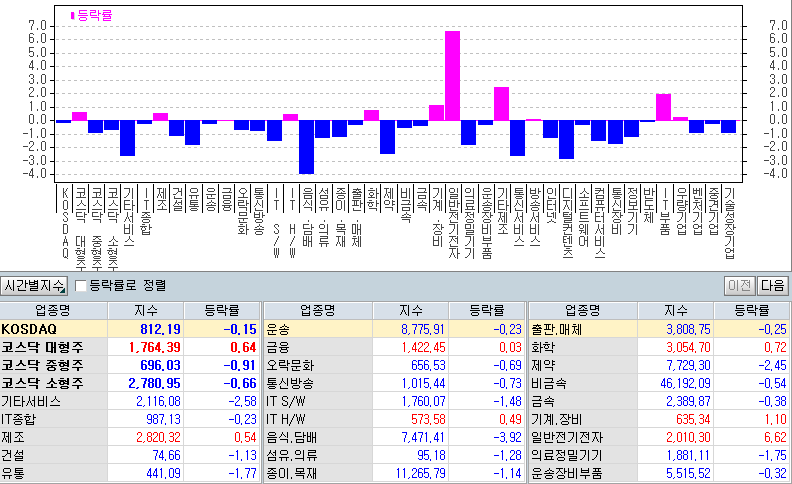 종가: 코스닥 812.19p(-1.24p/-0.15%)